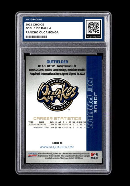 2023 Josue De Paula Minor League Rookie Card #10 Rancho Cucamonga Graded 10