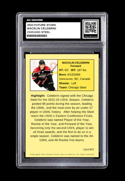 2023 Macklin Celebrini Future Stars Rookie Card #7 USHL Chicago Steel Graded 10