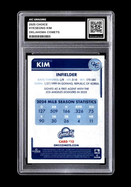 2025 Hyeseong Kim Choice Minor League Rookie Card #12 Oklahoma Comets Graded 10